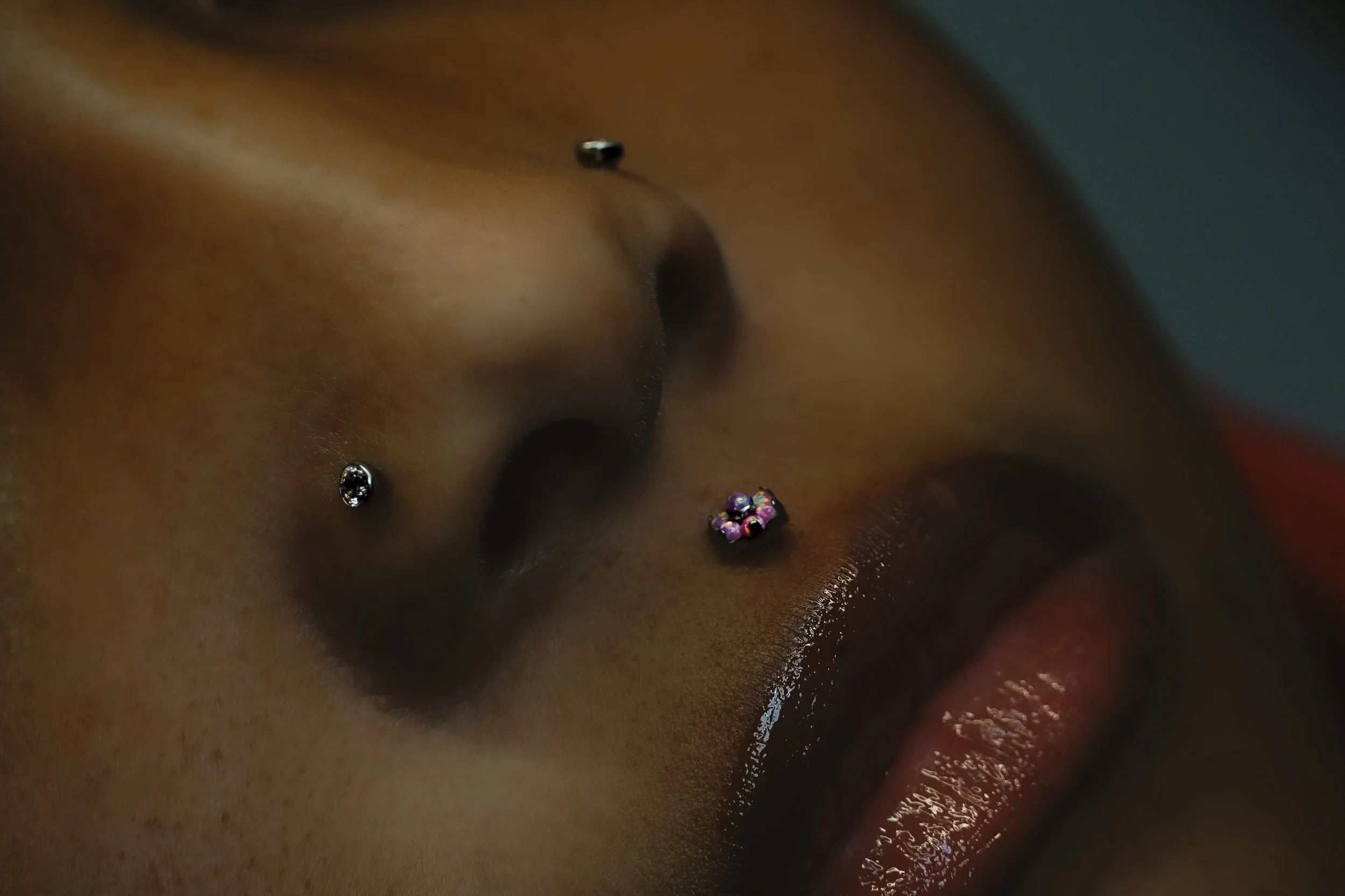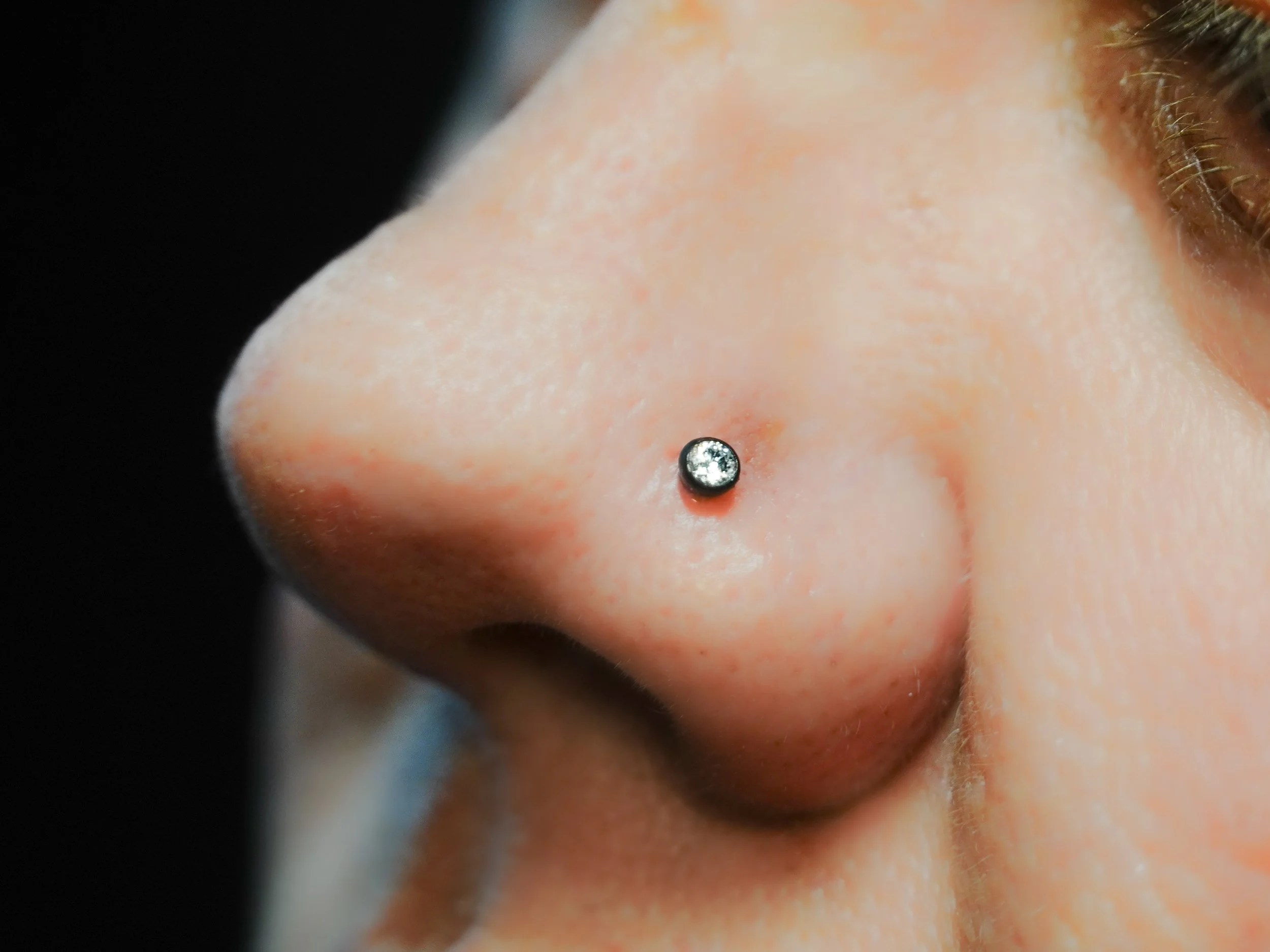 Nostril Piercing by Morgan using Titanium Threadless Flatback Jewelry, different gem and opal options in stock! Available by appointment 7 Days a week, or as a walk-in Wednesday-Sunday!